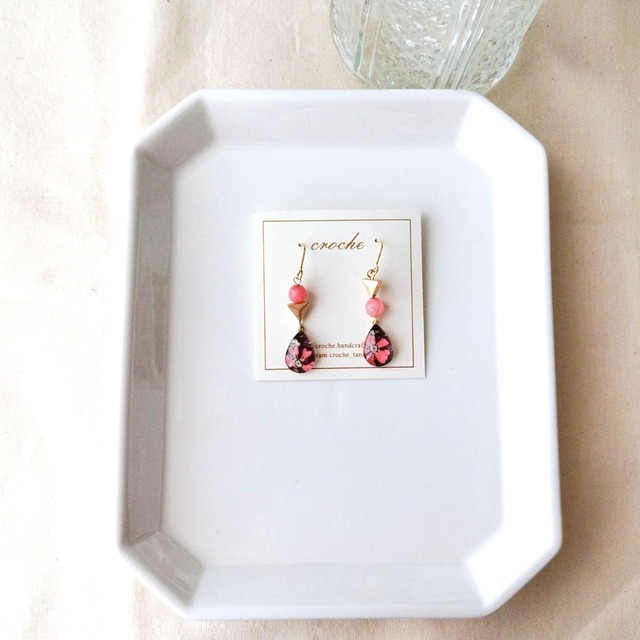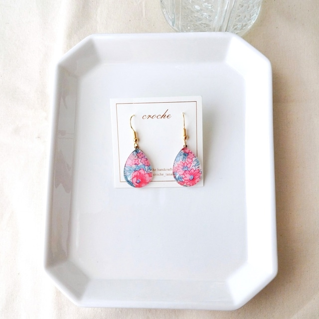ドロップ型フックピアス(明るいピンク色リバティ)
