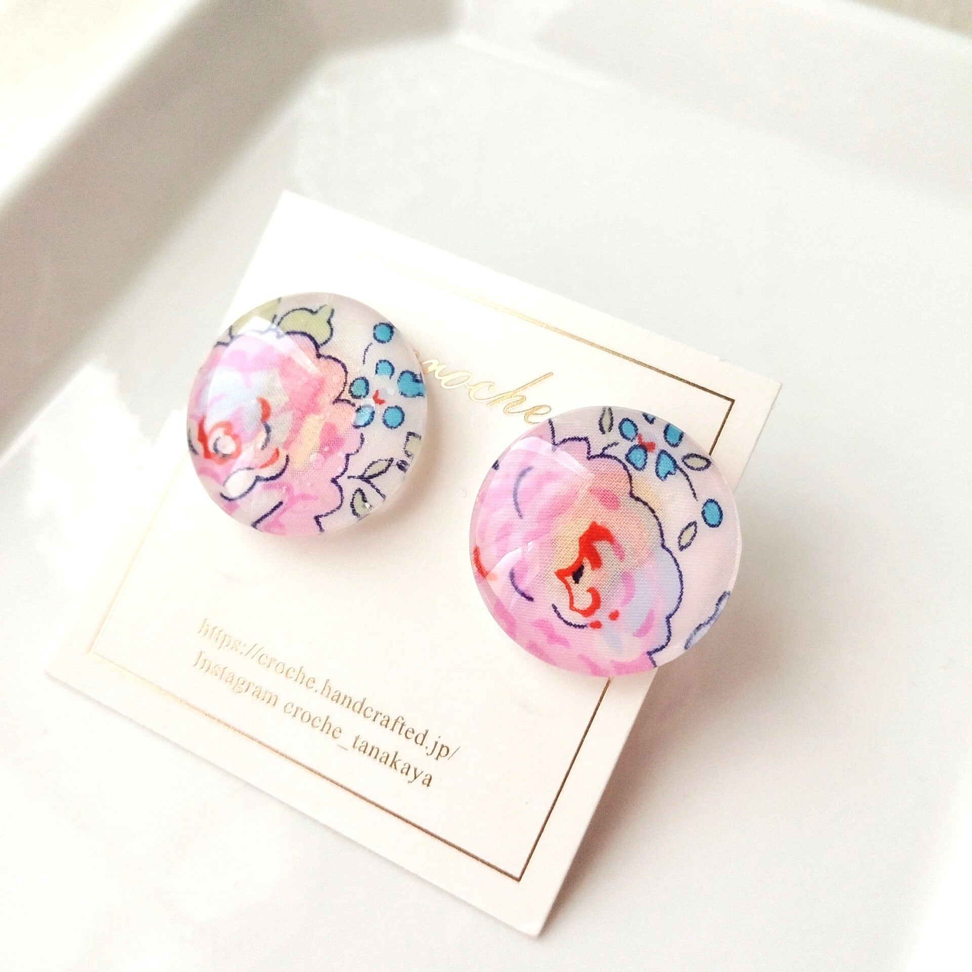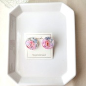 大きめ丸型のイヤリング(明るいピンク色の花柄リバティ)